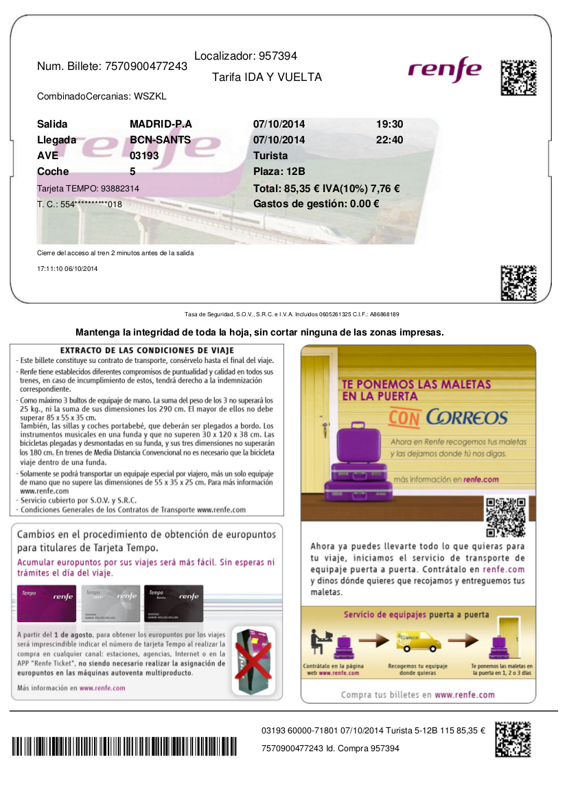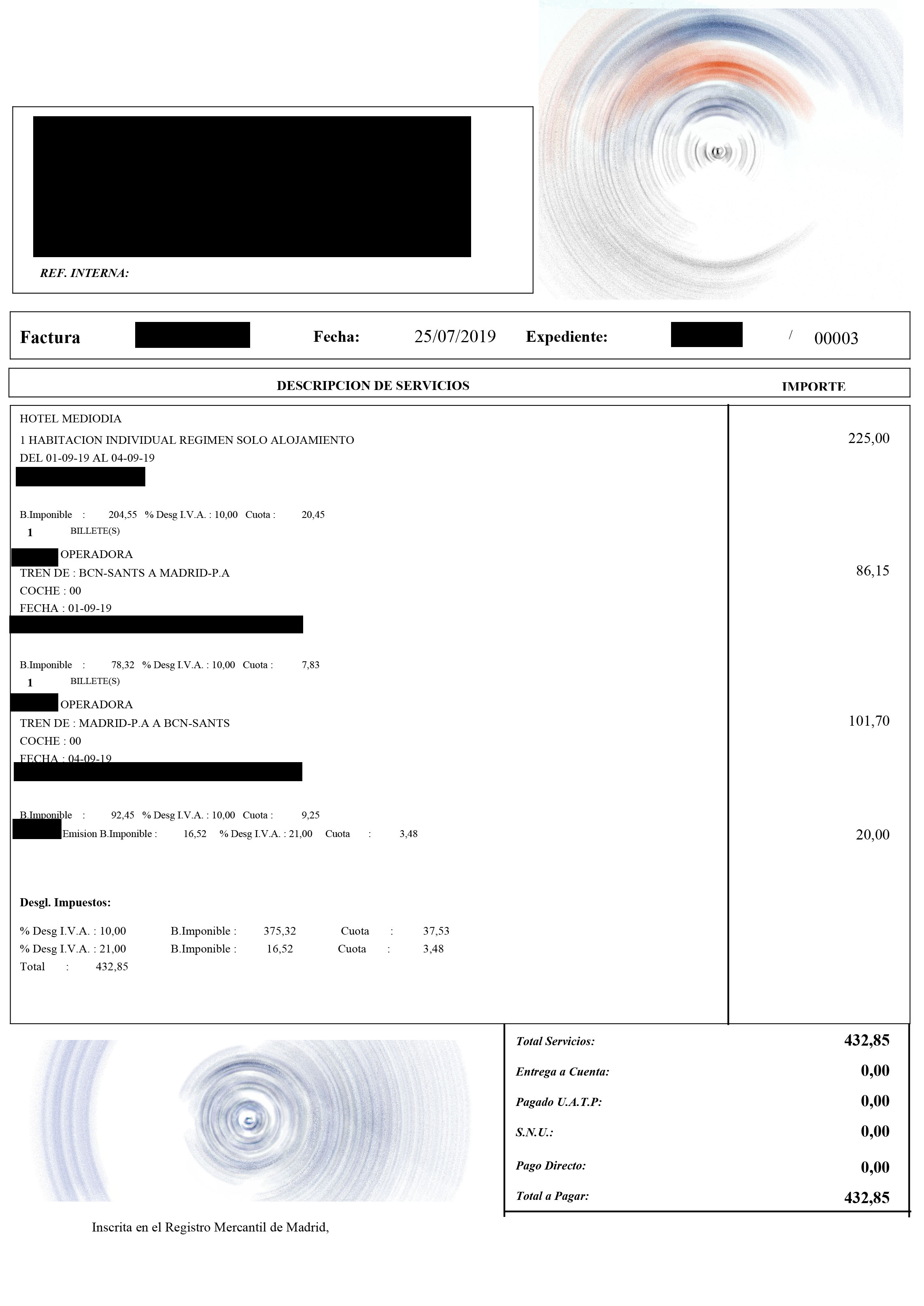 TOTAL GASTOS 1º etapa: 409,20 € (IVA incluido)