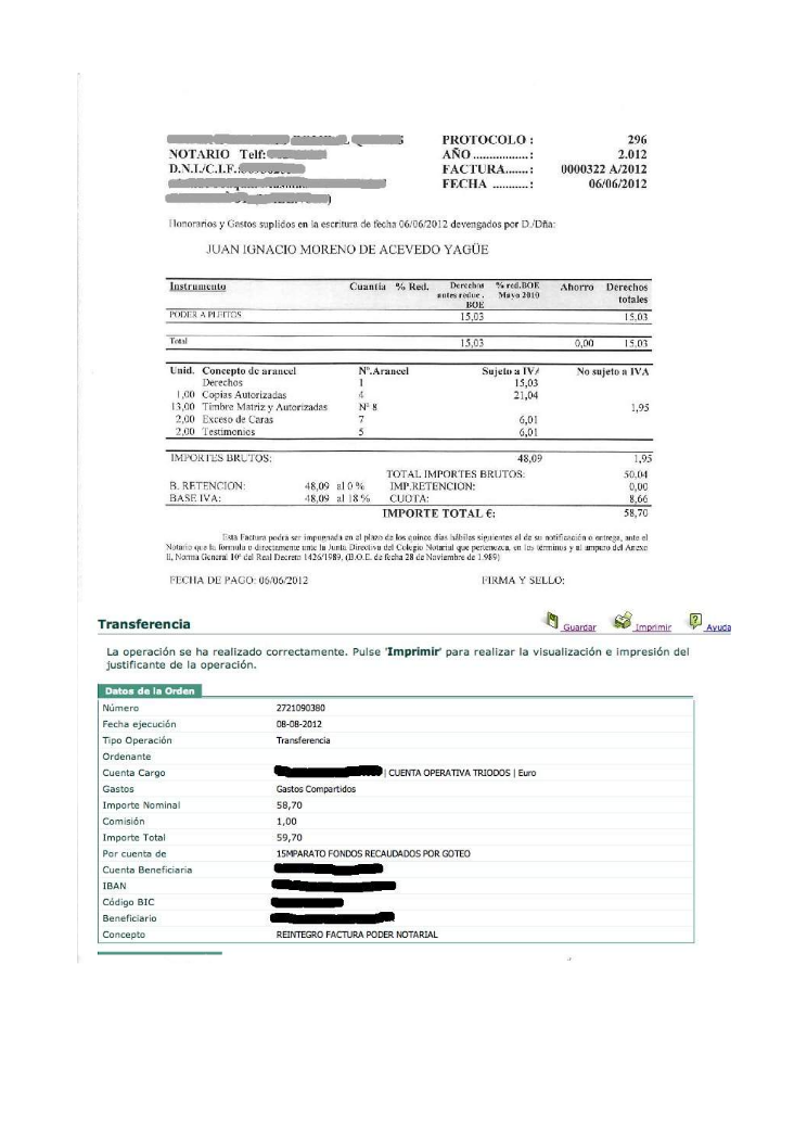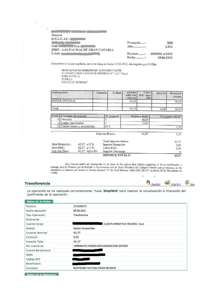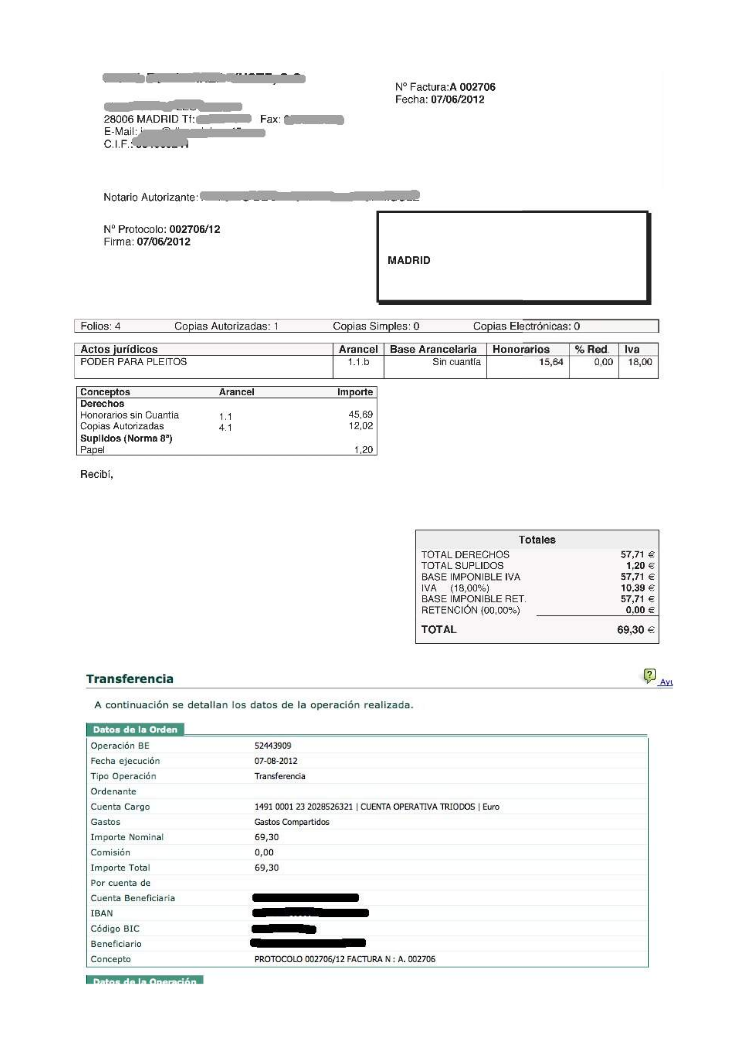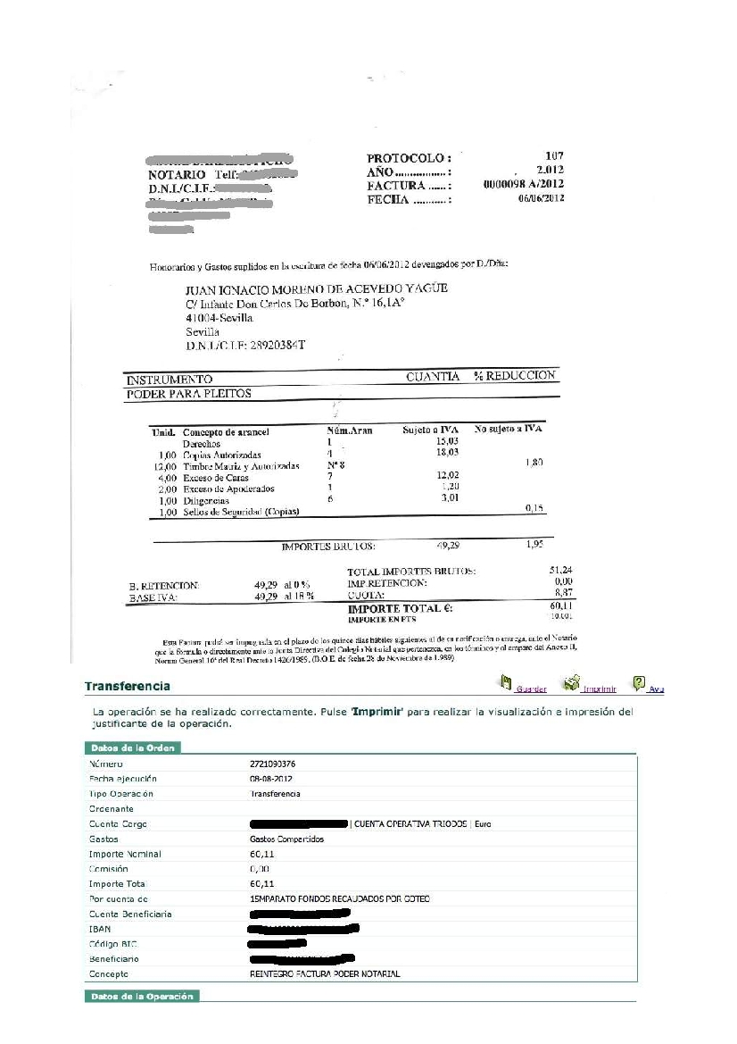 SUPUESTO 5 – Notarios para delegar al procurador (definitivo): 234,48 € (nos hemos pasado 34,48 €. Aquí se cierra esta partida) –