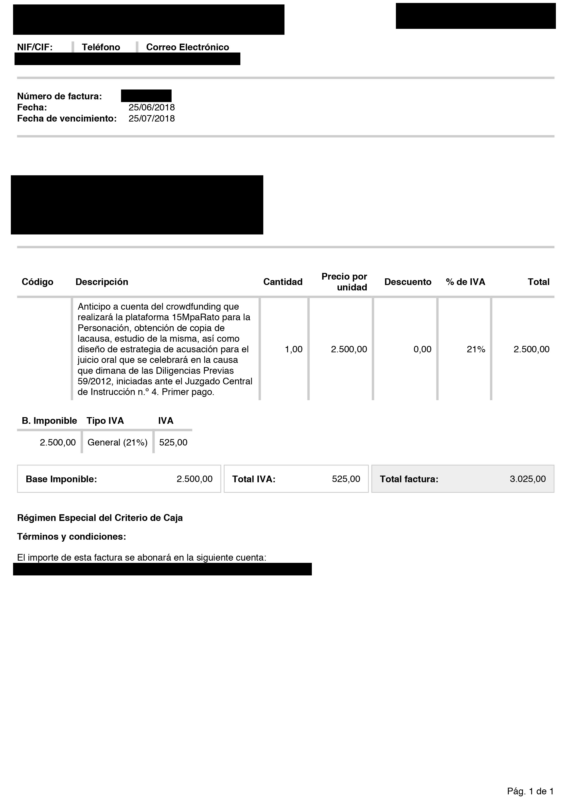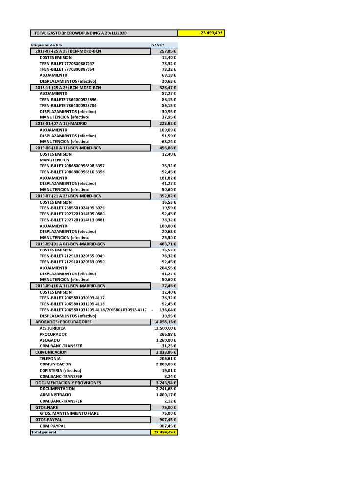 Este proceso consta de varias fases, que tenemos que financiar en diferentes periodos. Hemos estimado como suficiente la cantidad de 15.000 € para cubrir gastos de equipo jurídico y desplazamientos necesarios en esta nueva etapa.