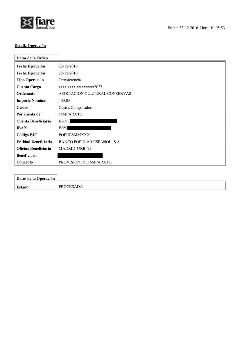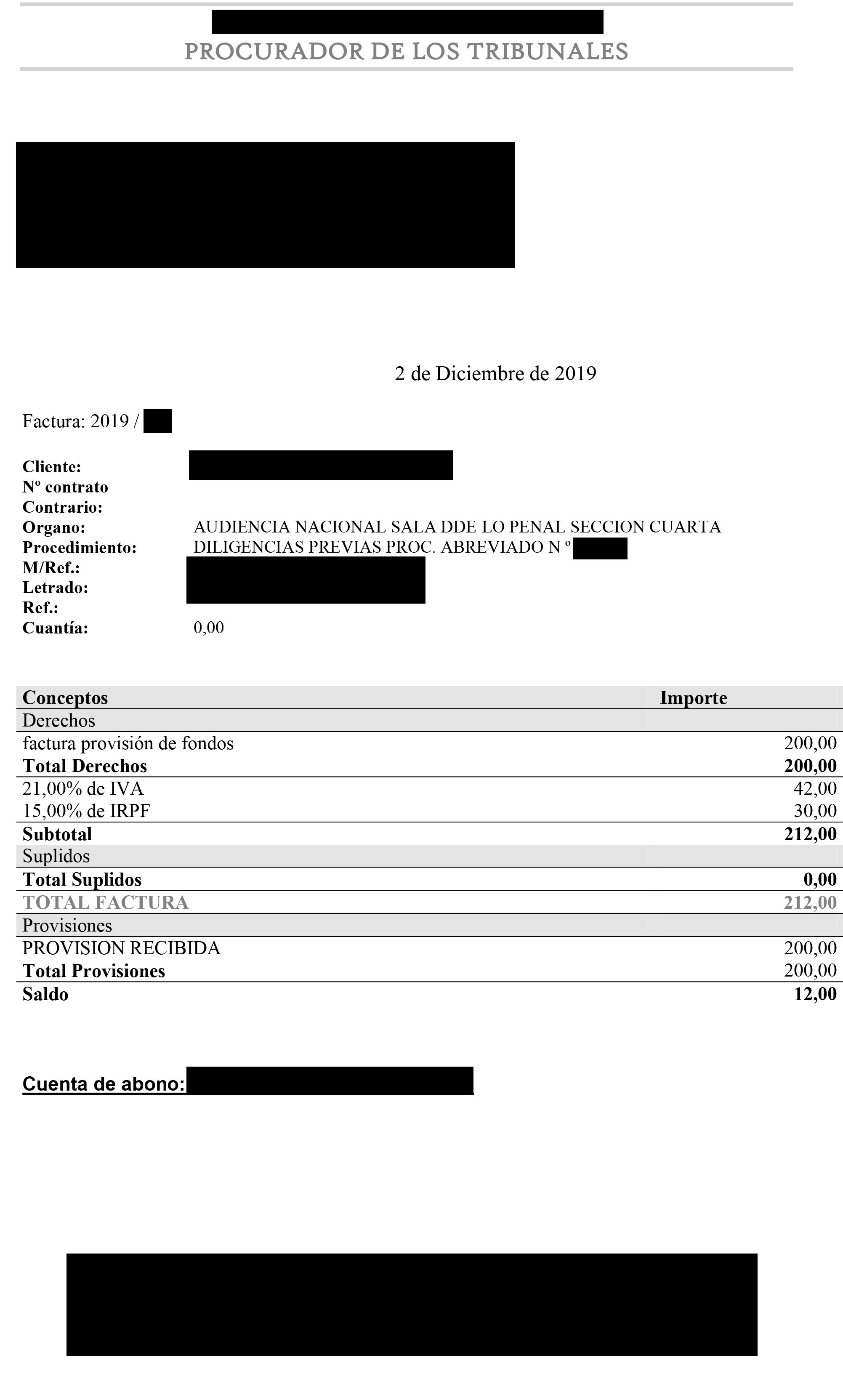 | Provisión de gastos procuradora diciembre | 400 € | 400 € | |