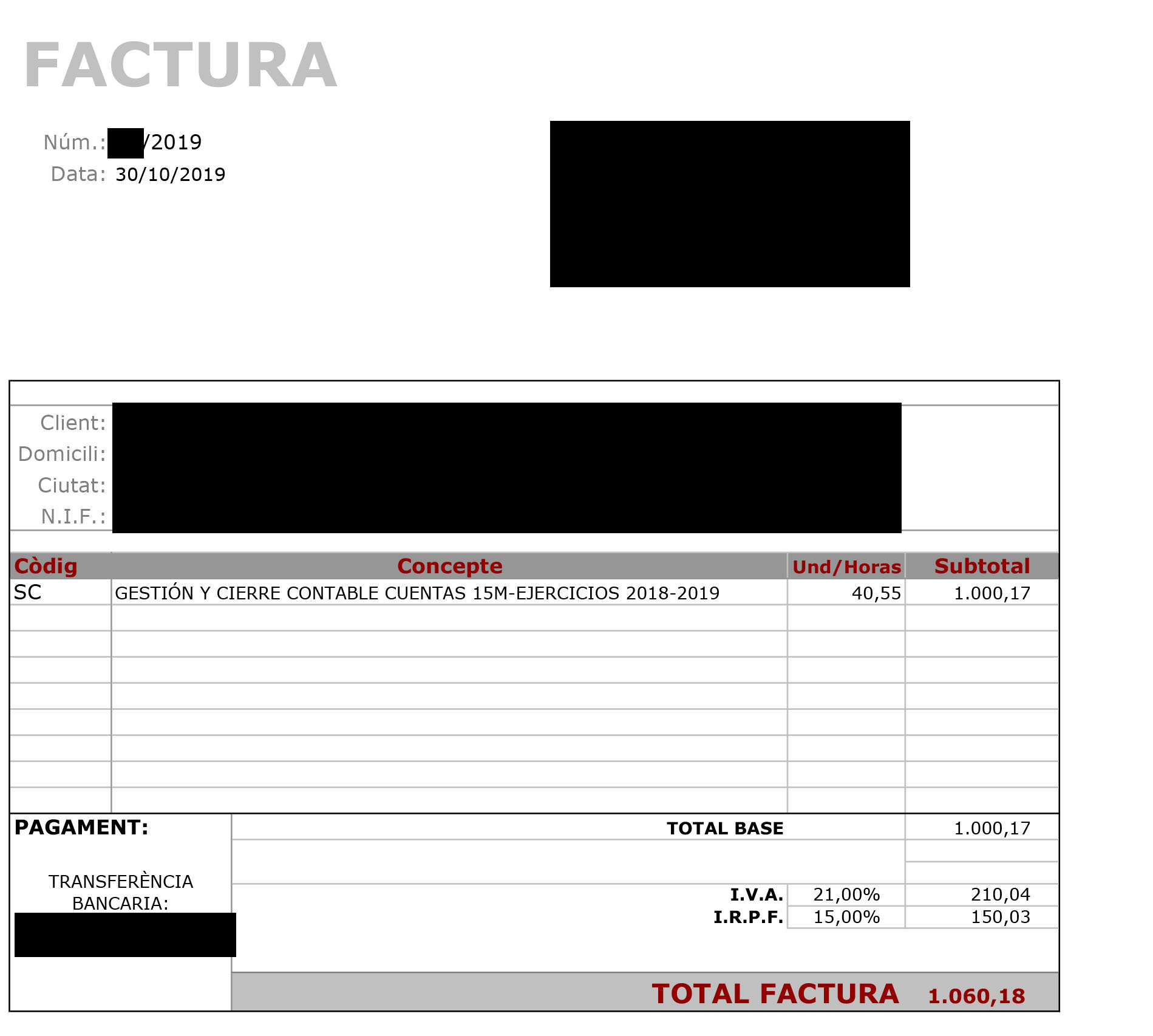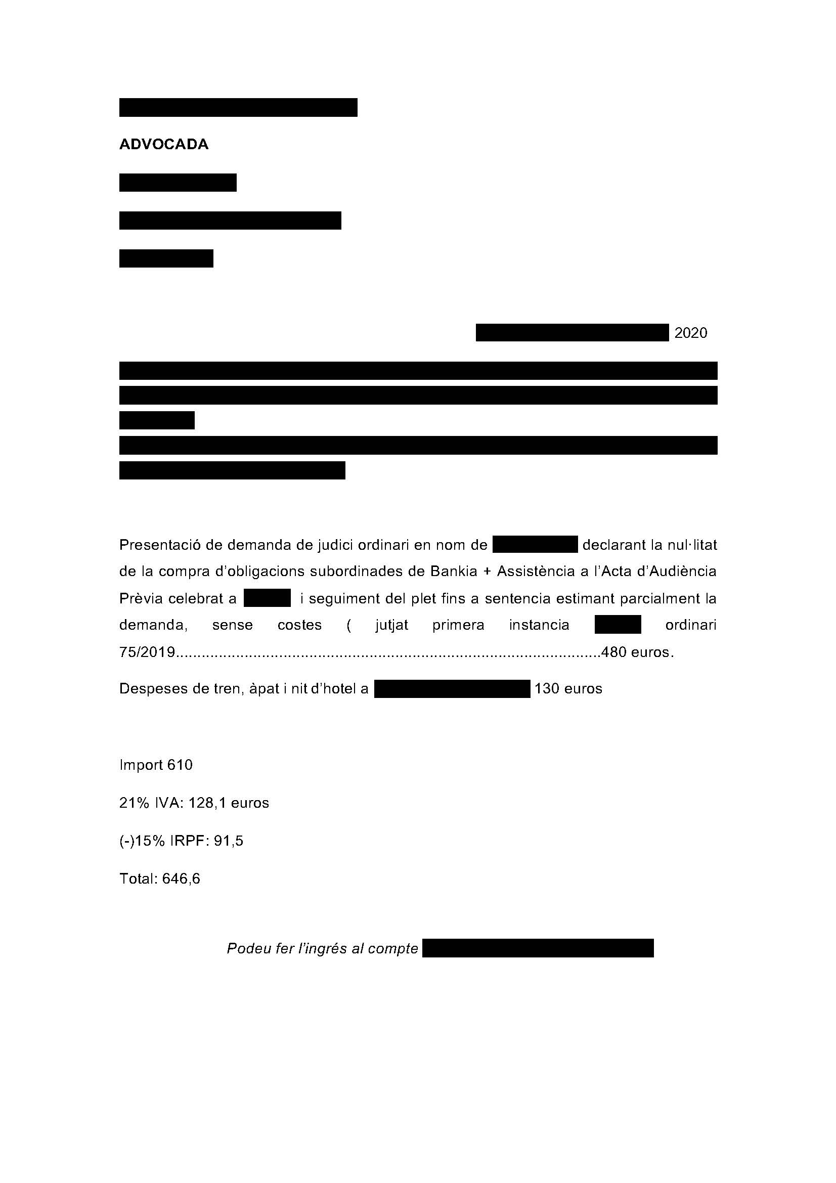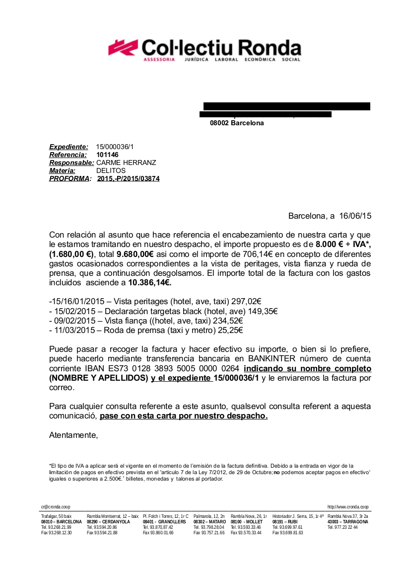 | Honorarios abogados Col·lectiu Ronda + Desplazamientos (16/06/2015) |