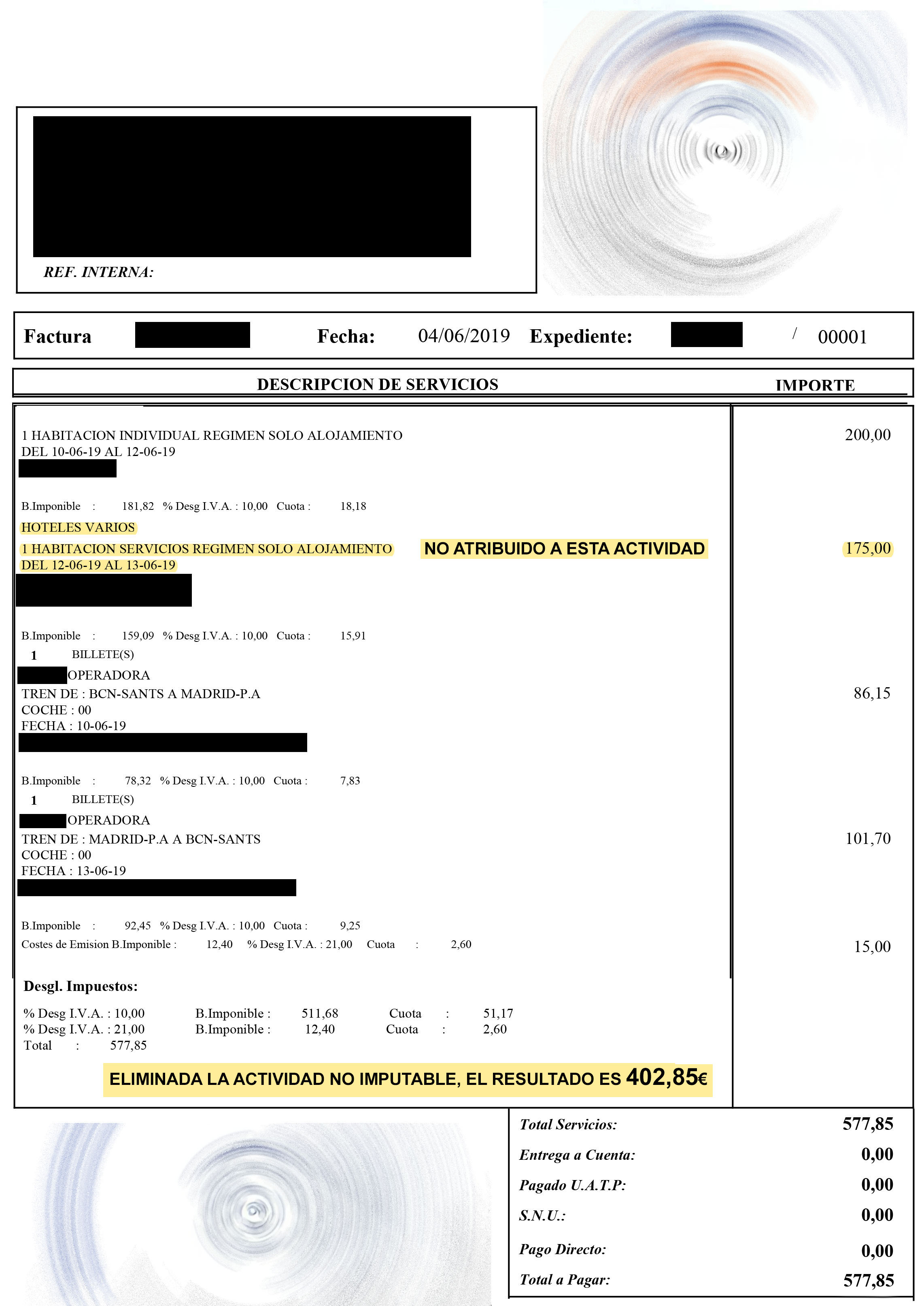 TOTAL GASTOS 3705 € (QUEDAN 93,25 € en este supuesto)