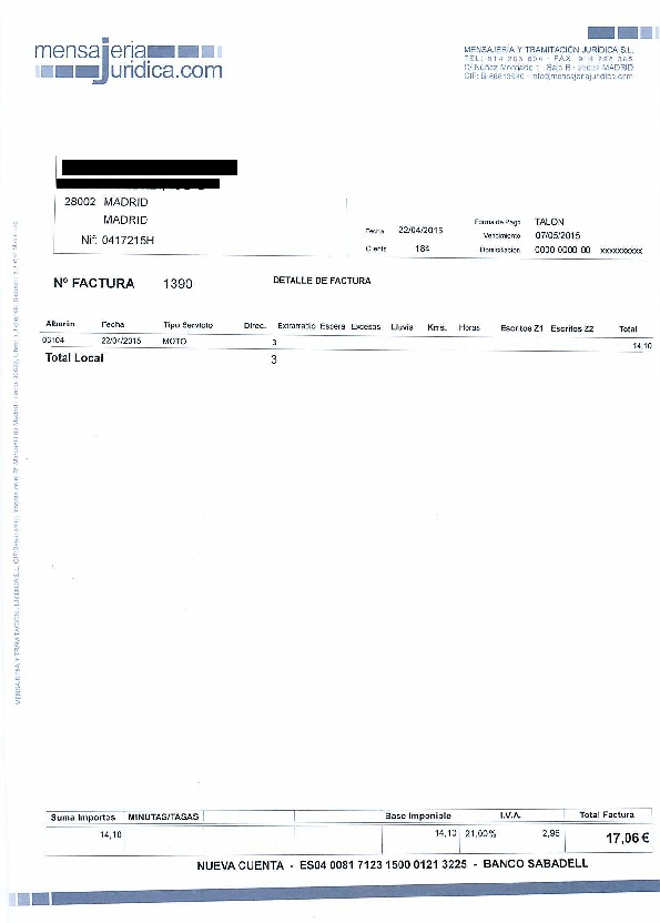 | Envío mensajería apud acta | 14,07 € | 14,07 € | |