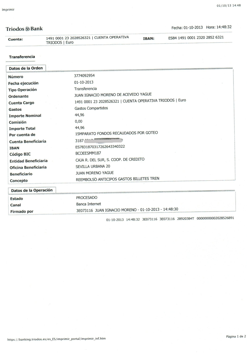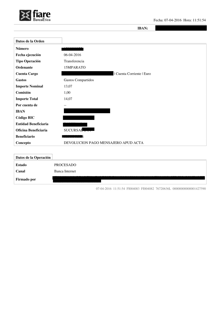 | Gastos de transferencia a cuenta 42,80 + 19,70 + 4,15 + 1 |