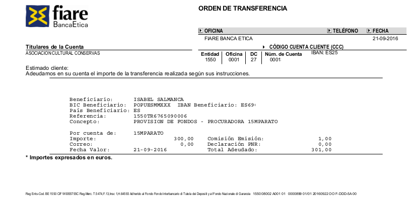 | Provisión de gastos procurador septiembre | 301 € | 301 € | |