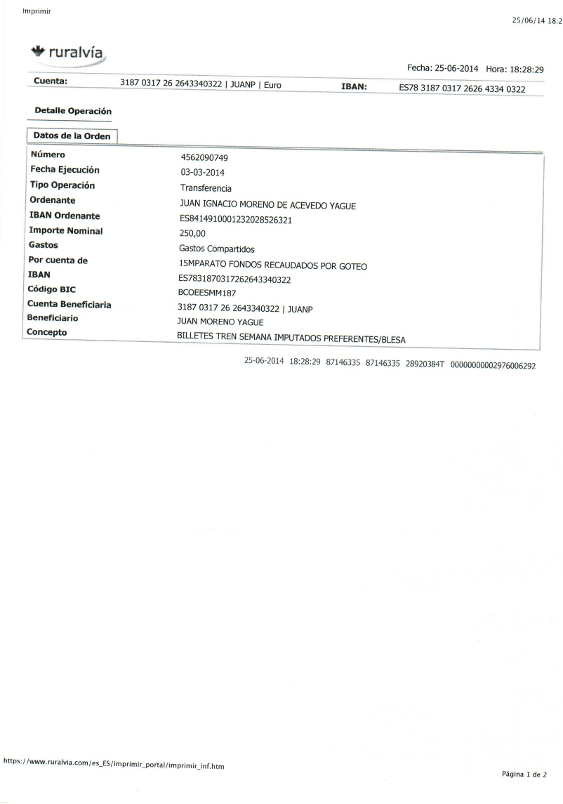 – Envío previsto a través de cuenta bancaria: 9.520,27 €